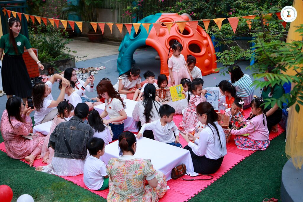 Ngày hội “Bốn mùa yêu thương” mừng ngày Quốc tế Phụ nữ 8/3 là một ngày hội dịu dàng và ấm áp được các cô giáo của trường âm thầm, bí mật chuẩn bị trong suốt mấy tuần. Cùng đội ngũ cán bộ, nhân viên của Nhà trường, các cô đã chăm chút cho từng ý tưởng, từng món đồ chuẩn bị, từng bức ảnh các con mang tới lớp, từng hoạt động dành cho mẹ và con… Từng góc nhỏ được trang trí xinh xắn, từng tấm thảm picnic, từng bông hoa, từng nguyên liệu sáng tạo, từng món ăn… đều được chăm chút ân cần, tỉ mỉ. Chương trình không chỉ là một ngày hội, mà là một món quà gửi đến các bà, các mẹ với sự trân trọng, biết ơn; là một không gian đầy kết nối để tình yêu thương được cất lời bằng những cái ôm, ánh mắt và nụ cười của bà, của mẹ và con.